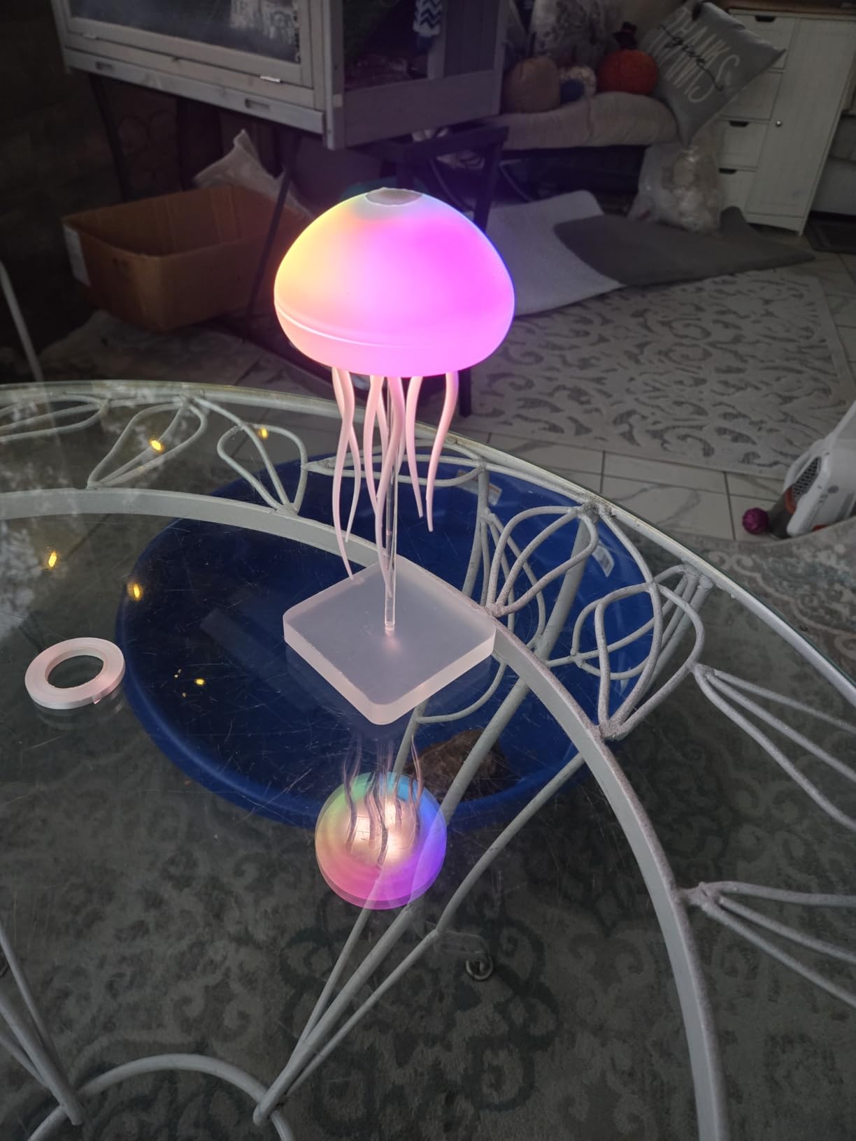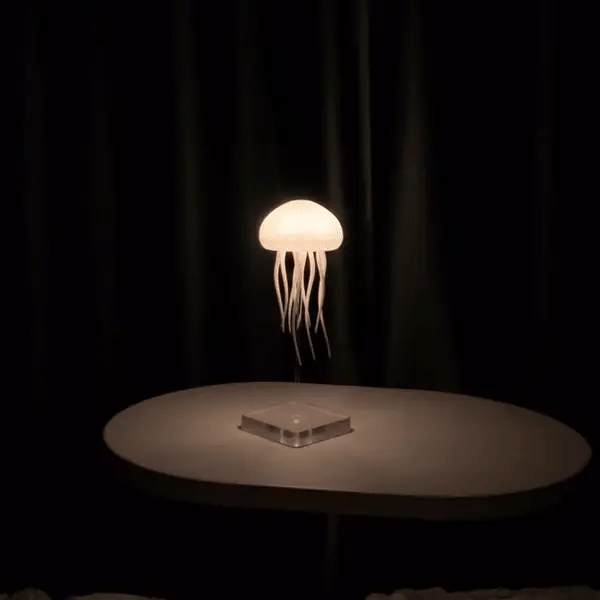 No, it’s not actually floating — the lamp is attached to a nearly invisible string that hangs from the ceiling. This clever design gives it a realistic floating effect, making it look like a jellyfish gracefully drifting in the air.